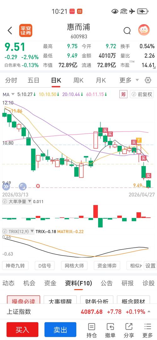 $惠而浦(SH600983)$公司跟主力联手的票,亏了几个点走人。这类小公司,你能赚钱需要极大的耐心和仓位分配能力。有这个能力了,我还在乎这些蛋公司吗?