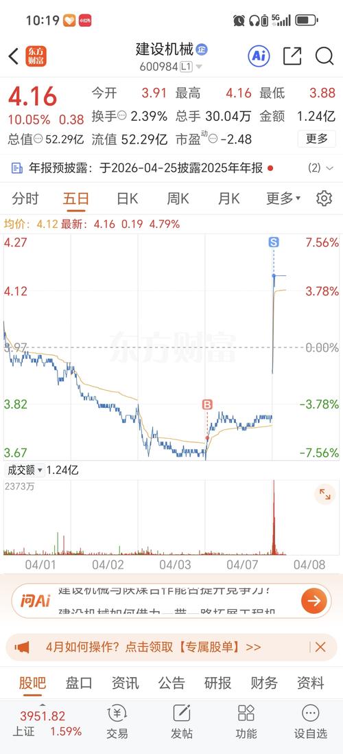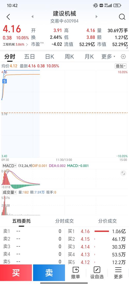 $建设机械(SH600984)$各种指标底背离严重,今早挂3.82没买到,恭喜持股不动的。