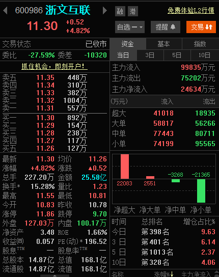 $浙文互联(SH600986)$尾盘2.5万,什么情况