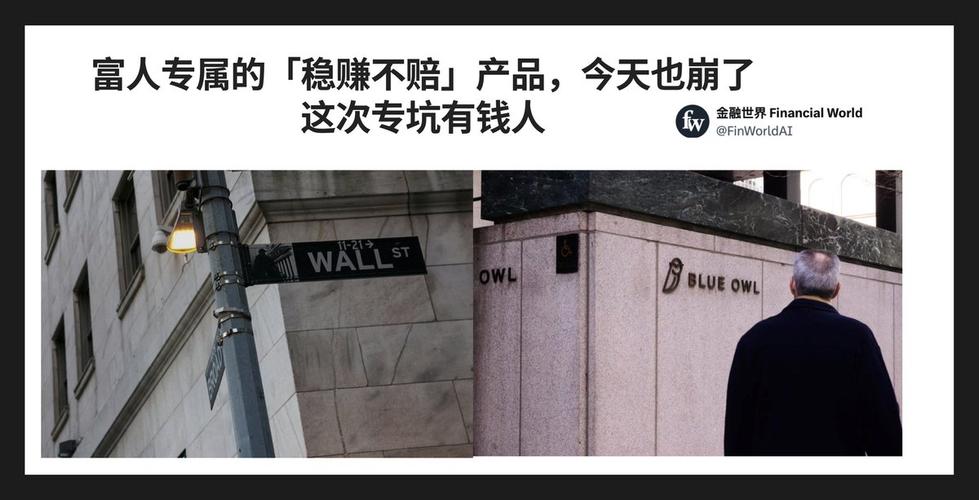 私募信贷有一个门槛,普通人买不到:通常要求合格投资者身份,美国标准是净资产超过100万美元或年收入超过20万美元。华尔街卖给这些人的故事一直是:这是只有机构才能拿到的好东西,股市跌了你的钱不受影响,稳定年化8%到12%,比债券强、比股票稳。过去五年,大量高净值人群把钱从股市转进了这类产品,觉得自己终于拿到了普通人拿不到的内部票。然而今天BlueOwl宣布,旗下两只基金单季度收到了40.7%和21....