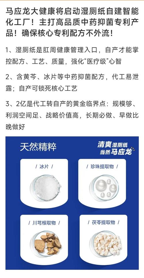 基于马应龙湿厕纸销售规模已经达到2亿规模,公司筹划高品质湿厕纸品类自产!自产的好处主要有以下三点: