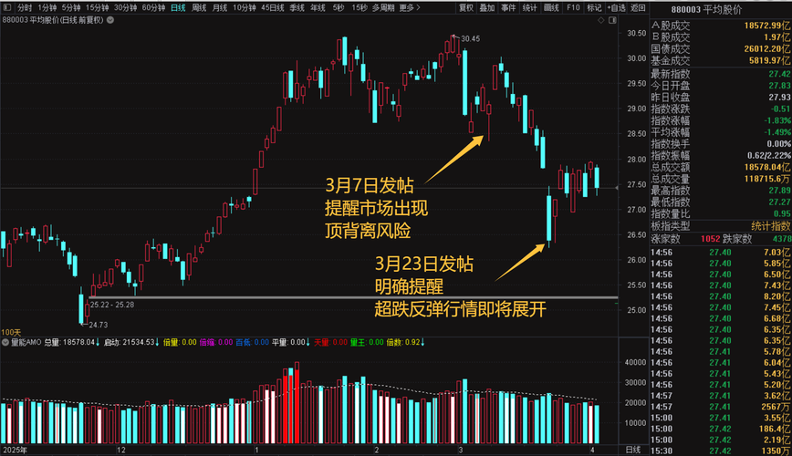 本来想发布一篇详细剖析“量化交易四宗罪”的文章,但是一些内容不让发,所以还在学曹雪芹大师“批阅十载、增删五次”,还在慢慢修改中。 今天暂时不谈量化对市场生态造成的严重破坏,先谈谈市场近期走势。 3月7日发帖提醒市场出现顶背离风险,又叠加地缘政治影响,3月的市场跌的比股灾还惨烈,3月23日再次发帖提醒超跌反弹行情即将开始,于是市场一直反弹到昨天,遇到压力位之后才止步。 当然了,现在的市场走势非常割裂...