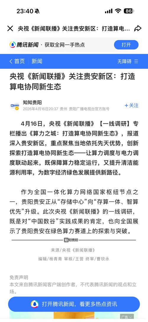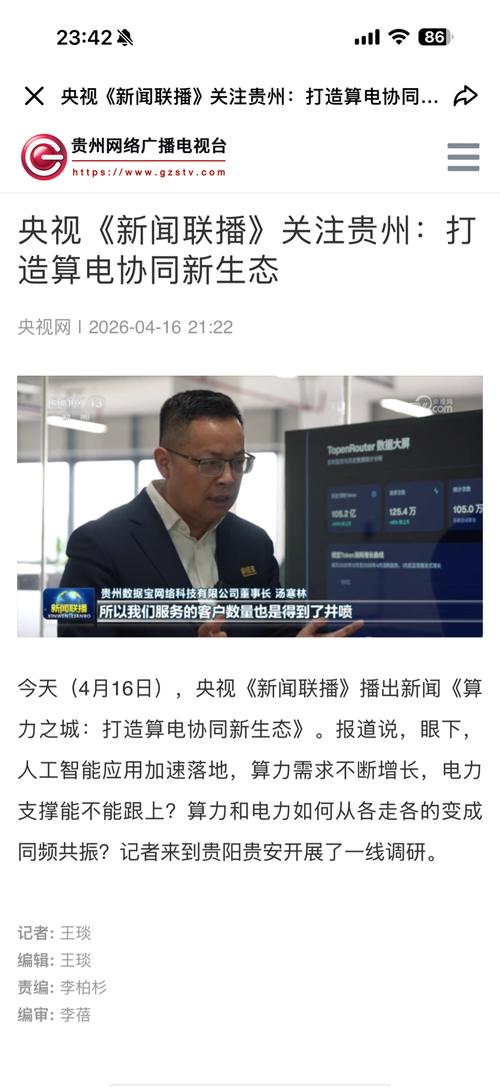我帮你整理了今晚《新闻联播》中关于贵安新区算力产业的核心要点,以及它与贵广网络的直接关联: 联播核心要点(3句话速览) 1.聚焦产业:报道贵安新区作为国家算力枢纽核心区,如何实现算电协同,让算力和电力联动,打造“算力之城”。 2.展示成果:重点展示了数据中心集群建设、**绿电(水电/风电)**高比例使用,以及算力调度的高效性。 3.战略方向:提出要把贵安新区建设成为全国数字经济发展高地,吸引大量数...