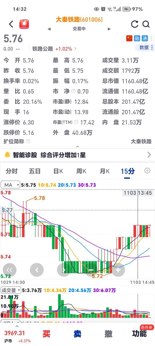 $大秦铁路(SH601006)$ 心电图的股票不要买,不要看,否则是浪费生命