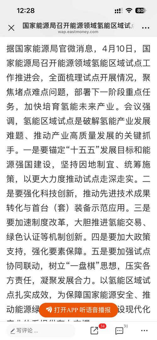 【国家能源局:加快培育氢能未来产业大胆推进氢能交易、绿色认证等机制创新】财联社4月15日电,据国家能源局官微15日消息,4月10日,国家能源局召开能源领域氢能区域试点工作推进会,全面梳理试点开展情况,聚焦堵点难点问题,部署下一阶段重点任务,加快培育氢能未来产业。会议强调,氢能区域试点是破解氢能产业发展难题、推动产业高质量发展的关键抓手。一是要锚定“十五五”发展目标和能源强国建设,坚持因地制宜、统筹...