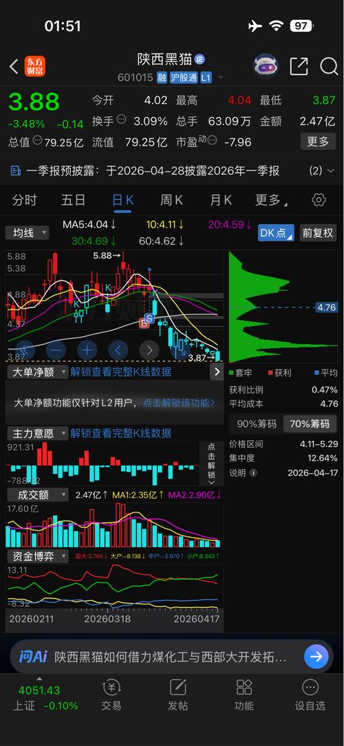 $陕西黑猫(SH601015)$谁都不知道底在哪,有可能3,也有可能就是周五3.88,亏的少可以走,亏的多割不动的就天天做T吧,成本能降1分是1分,周期股等周期到来,时间换空间了,今天等不到6元那就等明年,明年等不到就等后年