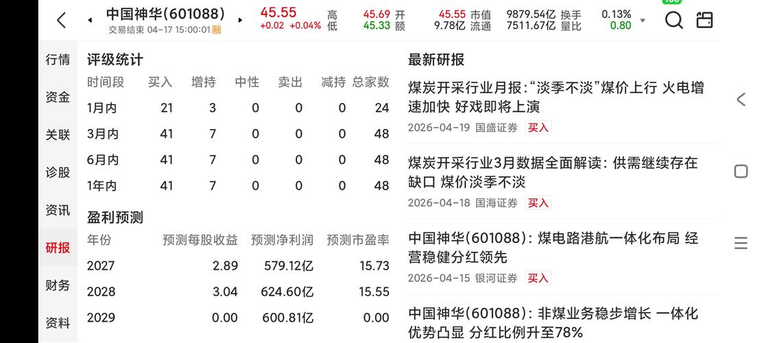 神华45.55元,18.6倍市盈率
