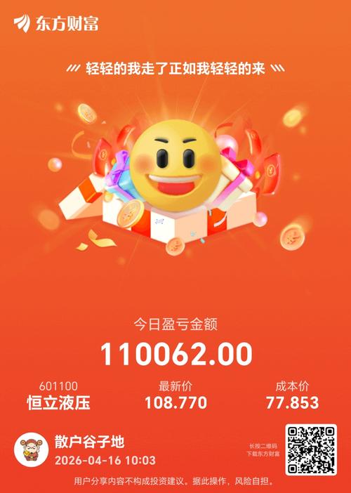 $恒立液压(SH601100)$#炒股日记# 2026-04-16盘前预测 继续维持横盘走势,主力今日维护盘面居多,总体跟随hs300,隔夜特斯拉大涨或有利好催化,若回调,依旧是宝贵建仓机会,今日应该会继续推仓位3-5手。今年市值依旧看3000e。