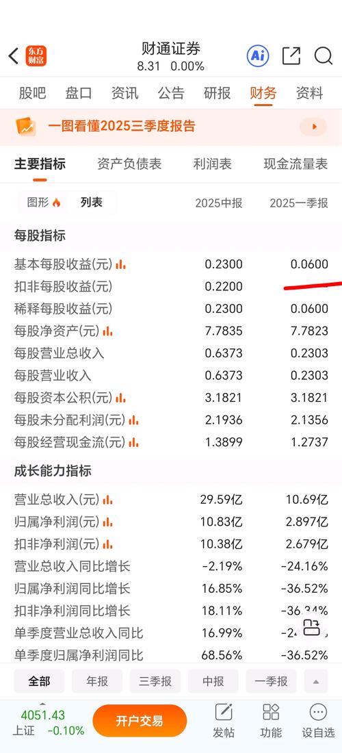 财通证券2025年年报终业绩还可以的(10派1.00元),2026年第一季度业绩比去年增长百分之三十即是:0.08元!公告业绩底开平走!