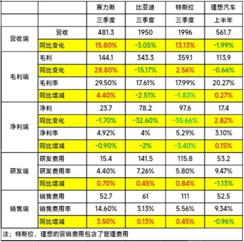 #【悬赏】2025三季报启幕!谁主沉浮?#$赛力斯(SH601127)$$比亚迪(SZ002594)$$特斯拉(NASDAQ|TSLA)$ 万万没想到!仅仅两年时间赛力斯就出现单净利润负增长。透过赛力斯三季度财报,可观察到赛力斯强于营销。 数据来源于上市公司财报 同比中这几家车企的财务表现都比好。尤其是净利润都是负增长。可以透过对比看差异。 三季度赛力斯营收、毛利润都是增长中。...
