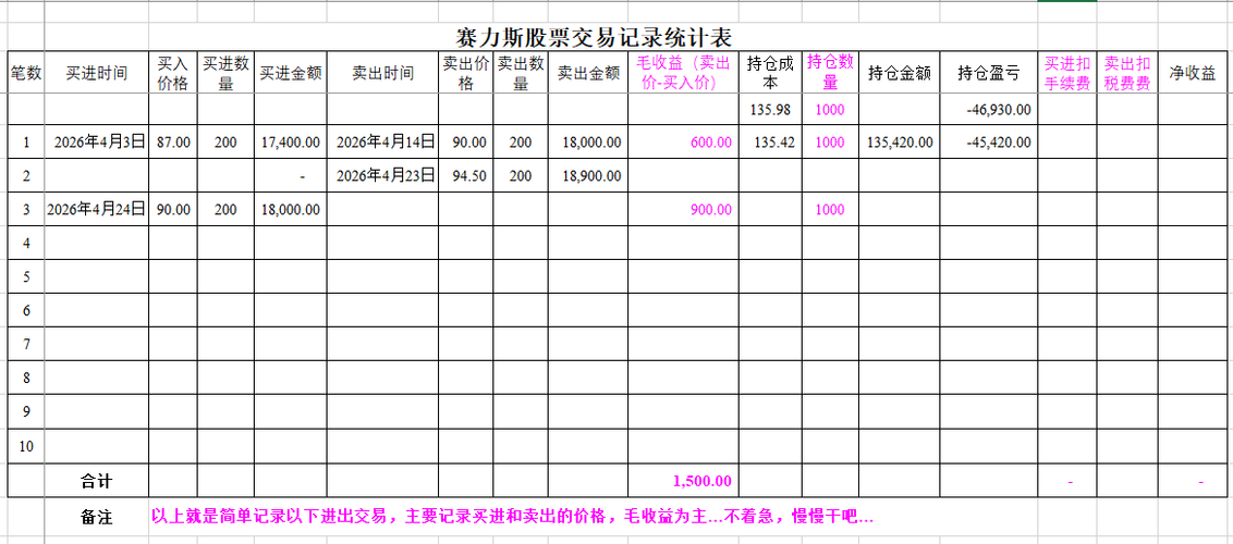 赛力斯股票交易记录表