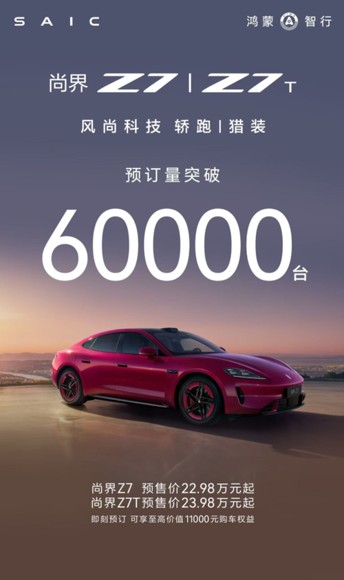 尚界Z7/Z7T小订突破6万台 华为896线激光雷达加持