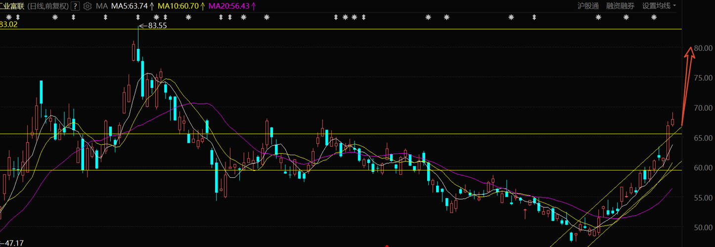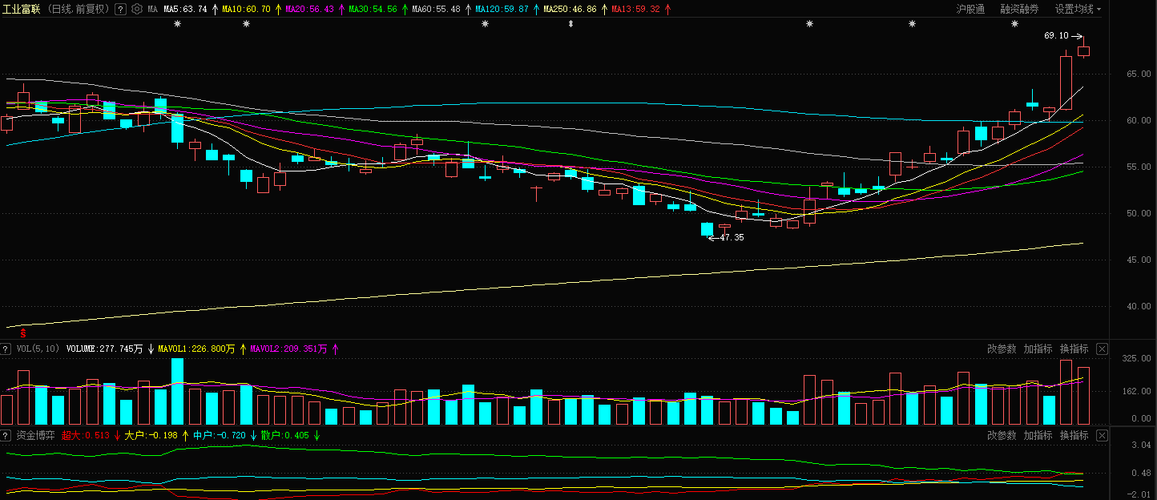 工业富联:周四走得还是比较稳的,早盘震荡有点揪心,午后慢慢上行,收盘小幅收涨,量能没放太猛但也没缩太多,整体很健康,MACD指标也一直向好,上行结构看得很清楚。作为AI服务器和高端制造的核心标的,行业景气度和资金认可度都在,支撑肯定是够的。周五估计还是会维持强势震荡,看开盘能不能接住,还有近期高点附近能不能冲得过去。要是量能能跟上,或许还能再往上探一探;要是量能缩了,估计就在近期的震荡区间里、整固...