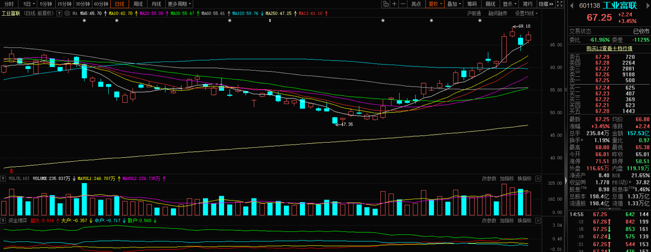 英伟达涨疯了,微软不再给openai分钱,明天立讯应该要出货了,立讯的资金都来工业富联,工业富联再创历史新高