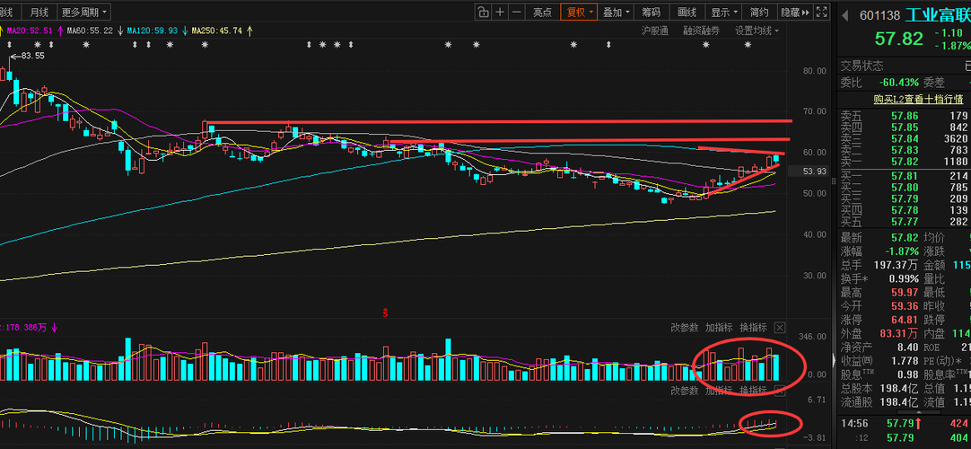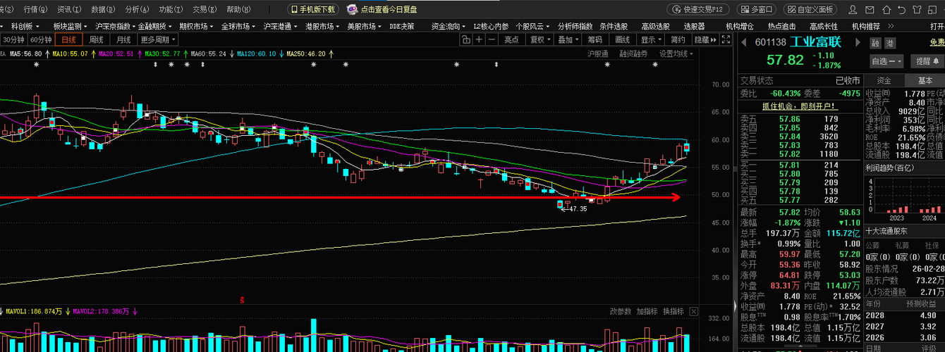 工业富联$工业富联$工业富联(SH601138)$ 富联是AI服务器板块,属于人工智能硬件属性,这几年数据中心的广泛布局,AI服务器需求很充足,而现在的市盈率才32倍,所以富联也是值得长线布局的,技术面上,现在已经形成shang升通道,股价沿着支持线持续走高,均线也形成多头排列,形成有效的支撑作用,所以短时间内即便有回调,幅度也不大,60这个价位是前期三角整理形成的股价中枢,这里有筹码峰,所以短时...