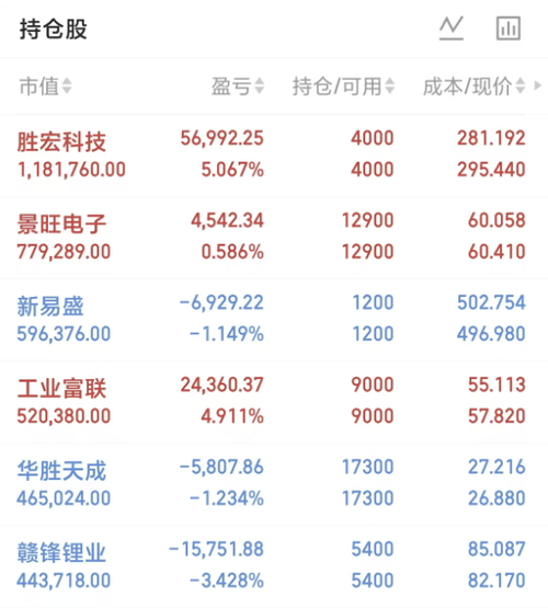 $工业富联(SH601138)$工业富联昨天相对稳一些,虽然也是冲高回落,但跌幅和形态都比前面几只温和。它本来就是中军走法,不会像高弹性票那样天天大开大合,所以昨天那种回踩更像是突破之后的正常确认。现在先看57.5附近能不能继续守住,只要这个位置不丢,整体还是偏强震荡结构,后面还有重新冲59到60的机会。 $华胜天成(SH600410)$华胜昨天偏弱整理,收在26.88,还是没有把前面平台真正突破...