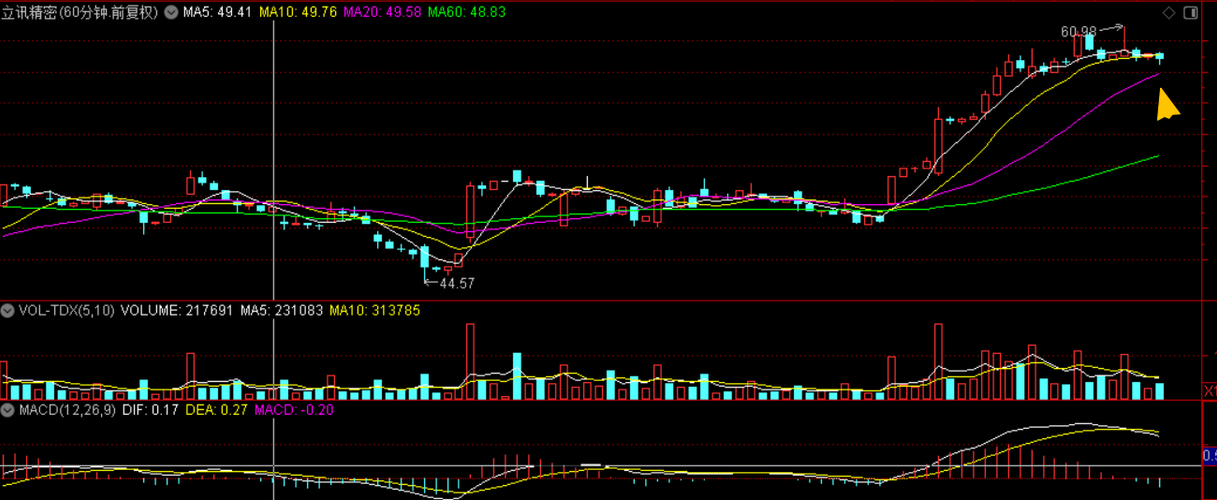 $立讯精密(SZ002475)$立讯精密,这个票今天的策略还是持有剩余苍,60分钟线MA20有做T机会。补苍的话,需要回撤到55左右,今天大概回不到这个位置。等待未来几天回补的机会。受折叠屏概念和苹果18新品计划的影响,中线很可能继续强势。但对于4200亿市值的标的,大站后震荡蓄势是需要的,等待回补机会吧。 $工业富联(SH601138)$工业富联,今天盘前策略是,寻找补苍机会,5日均线或60分钟...