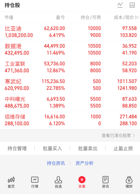 $华工科技(SZ000988)$:4月3日介入并发帖后6连涨,恭喜同步家人!6日主力净流入27亿,日线MACD零轴线上二次金叉。 $工业富联(SH601138)$:大幅缩量回踩5日线洗盘,大涨小回规律明显。今天加了50%; 欧科亿:去年业绩大增81%,今年一季度业绩中值2亿,是去年全年的2倍,1季度动态市盈率18.82倍; $亨通光电(SH600487)$:再好的票也要尊重趋势,不得已执行纪律了。...
