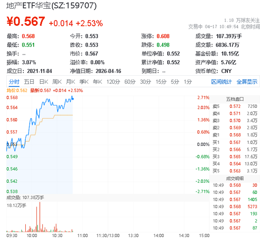 华宝基金地产ETF(159707)涨2.35%,衢州发展领涨超10%,政策利好提振地产股弹性,配置价值凸显!