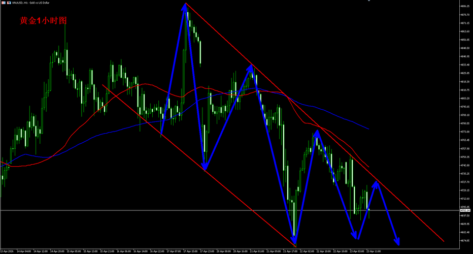 黄金最近我们一直强调只是反弹,黄金技术上上周冲高的时候我们就说空间有限,有调整需求,开始一路高空,黄金开始一路震荡弱势下行,黄金高空连连收割,消息面上虽然诡谲多变,不过我们说最终其实要达成协议也还是很难,那么黄金还是会继续承压回落,来完成调整,黄金短线美盘数据反弹后还是继续高空。 黄金1小时整体还是在下行通道中保持震荡下行的走势,短期还将弱势延续,黄金当前阻力压制已经下移到4720-4730区域,...