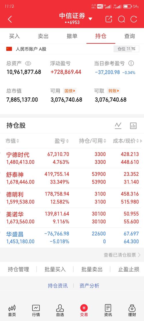 $宁德时代(SZ300750)$ 持仓日记:持仓盈利,新开布局 今日持仓布局 继续持有舒泰神、宁德时代、德明利、美诺华,盈利标的坚定持有,不被短期波动影响; 早盘新布局华盛昌,完成持仓结构优化。 账户总资产1096万,浮盈72.8万, 71.9%仓位,现金充足,以静制动,静待行情。 投资是一场长跑,稳住节奏,方能行稳致远 $中国西电(SH601179)$$蓝色光标(SZ300058)$