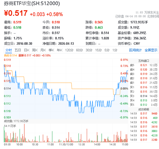 券商ETF华宝(512000)价格上扬,东兴证券领涨1.71%,政策推动行业高质量发展新阶段,估值底部迎来布局机会