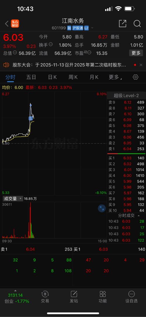 $江南水务(SH601199)$蒸蛋一下,拉涨停。