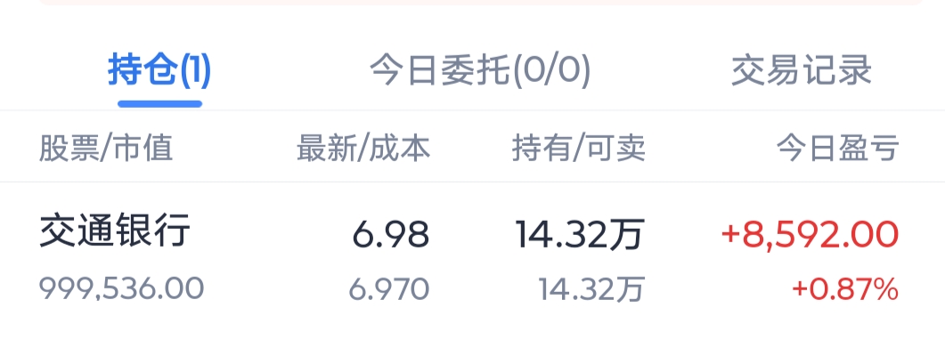 $农业银行(SH601288)$无所畏惧啊,跟着江兄干,把农业清仓了,大家过来。我已经清仓了,大家一起来吧。直接一把满仓。交通银行才是真正的价值投资。