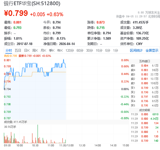 华宝银行ETF拉升0.63%领涨板块,苏州银行涨逾3%,银河证券看好高股息低估值红利属性,配置性价比凸显!
