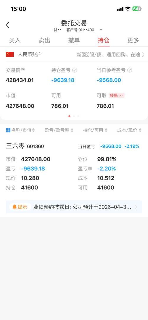 $三六零(SH601360)$360让我开始亏钱了