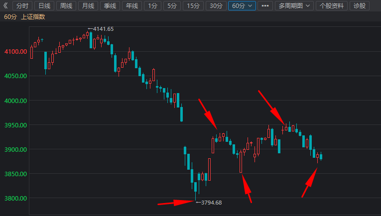 2026.4.3复盘三六零 关于上证指数 从2026.3.3的4197.23连续下杀到2026.3.23的3794.68,累积下跌10%。 虽然今天大跌1%,但是我们从60分钟级别可以看到其低点和高点都在逐渐太高。 我们再对比下A股平均股价从2026.2.27的30.45下跌到2026.3.23的26.233,累积下跌16%。 虽然今天大跌1.09%,但是我们从60分钟级别可以看到其低点和高点也在...