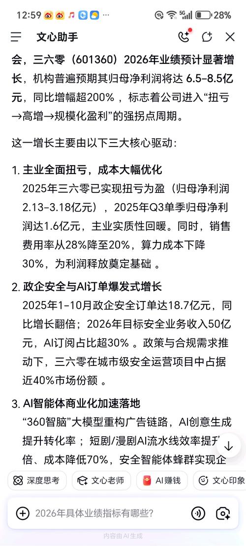 $三六零(SH601360)$问:360股票2026年业绩会大增吗? 文心助手回答如图