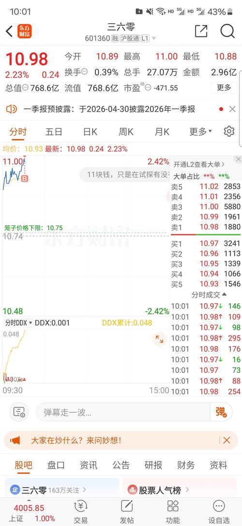 $三六零(SH601360)$一顿操作猛如虎,上午做T结束等下午在操作。上午下班