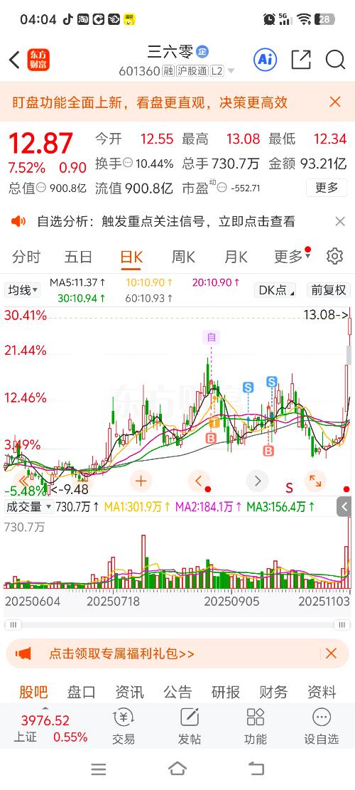 $三六零(SH601360)$ 三六零,网络安全、人工智能类公司。中报同比增长78.88%,上周五,三六零在底部出现放量涨停,当天也是第三季度业绩公告,很明显涨停是因为三六零业绩出现好转所导致,现在很多硬件类大科技股涨上了天,而很多二、三科技股还在很低的位置,只要有一些利好,很容易吸引紫金发掘炒作,三六零就是这样,现在因业绩大增现出底部首板涨停,并突破重要均线,后市有可能出现一波行情。昨天高开震荡...