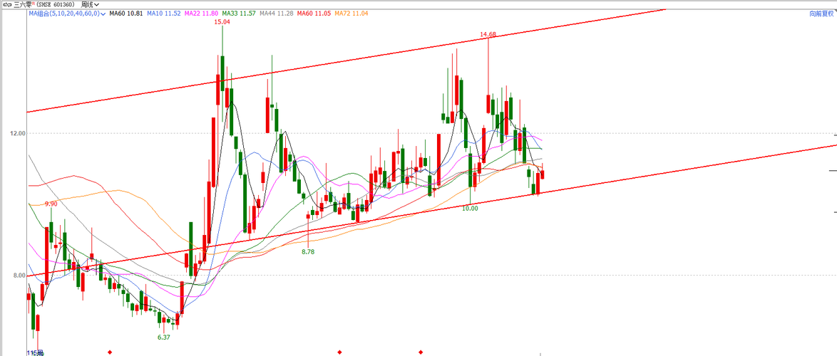 #炒股日记##复盘记录##股市怎么看##收盘点评##社区牛人计划# $三六零(SH601360)$ 在周线下分析投资标的 投资标的在红色阻支区间震荡上升,因...