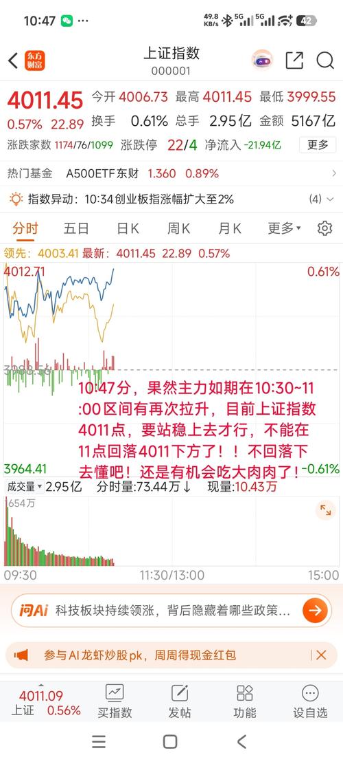 10:47分,果然主力如期在10:30~11:00区间有再次拉升,目前上证指数4011点,要站稳上去才行,不能在11点回落4011下方了!!不回落下去懂吧!还是有机会吃大肉肉了! $昆仑万维(SZ300418)$$三六零(SH601360)$$拉卡拉(SZ300773)$