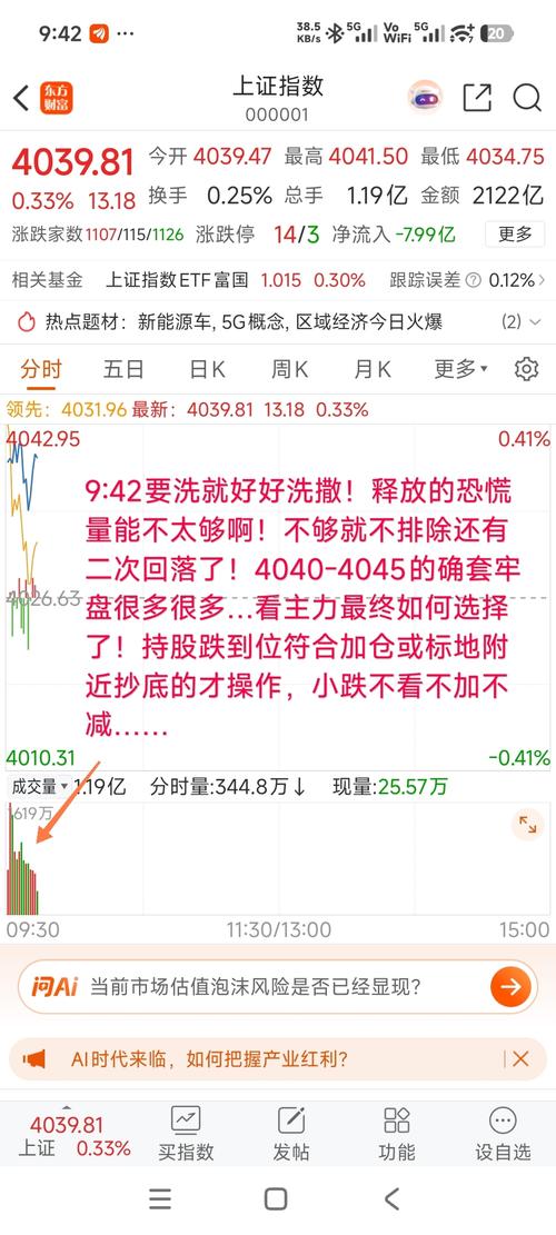 $上证指数(SH000001)$$昆仑万维(SZ300418)$$三六零(SH601360)$ 9:42要洗就好好洗撒!释放的恐慌量能不太够啊!不够就不排除还有二次回落了!4040-4045的确套牢盘很多很多…看主力最终如何选择了!持股跌到位符合加仓或标地附近抄底的才操作,小跌不看不加不减…… 9:37,券商VS银行,直接跷跷板走势!主力今日是觉得再重压4040上下卡位血洗筹码了!!!那就来吧!下...