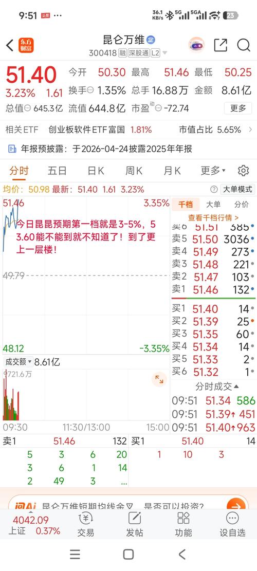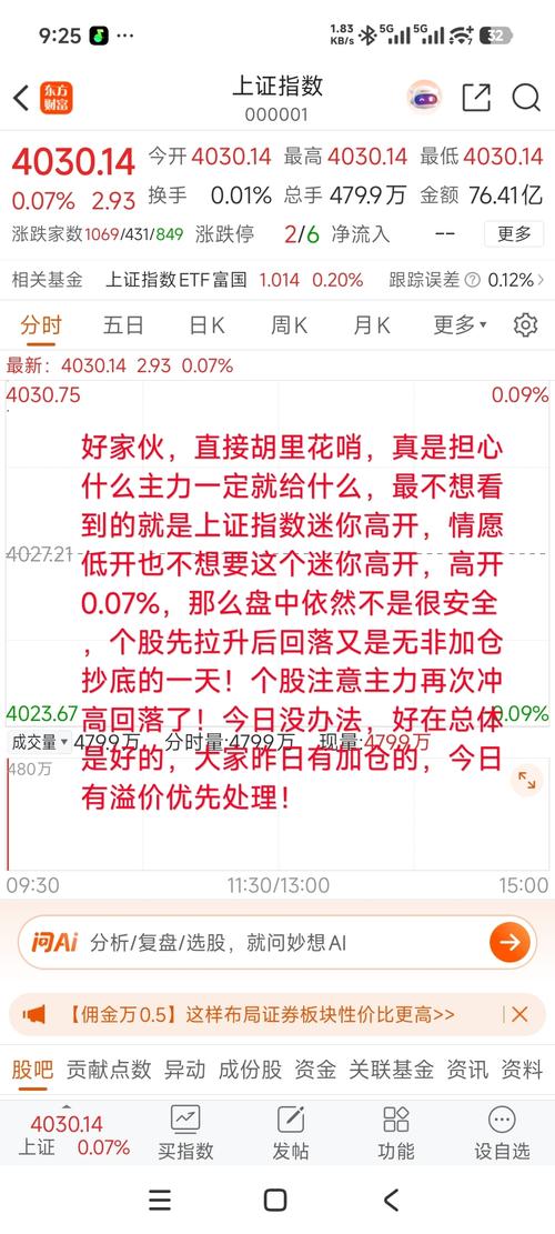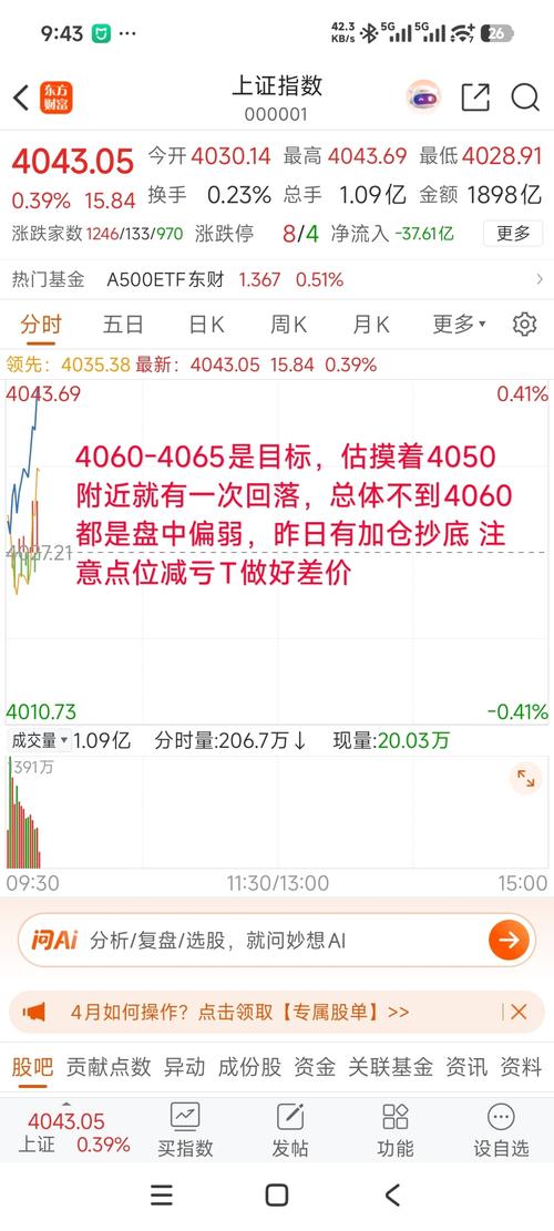 $上证指数(SH000001)$$昆仑万维(SZ300418)$$三六零(SH601360)$ 10:11上证指数果然是4045又回落一下,然后呢!继续冲击4050→4060→4065哇!一步一个脚印!玩得真不赖,一句话今日不到4060以上依然有冲高回落风险,盘中弱势! 9:56银行板块直线下跌好,很好!这样与其跷跷板的题材个股就要再拉升一段了!比如Ai软件系列……不过拉升的也要准备T了! 今日昆...