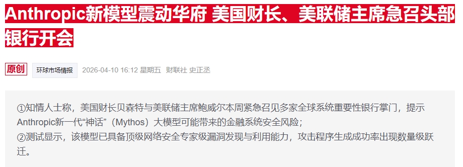 美监管机构强推Anthropic新工具华尔街大行将进入“自查模式”