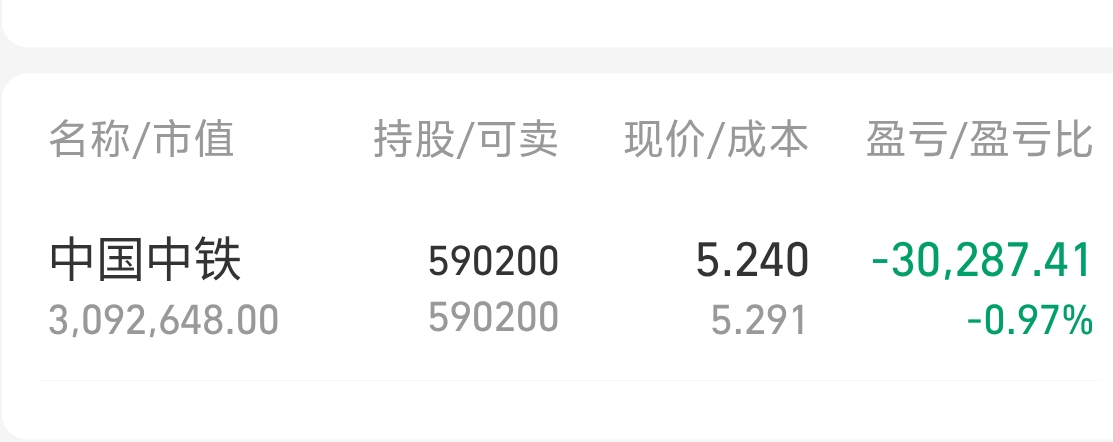 $中国中铁(SH601390)$4.9止跌,早点跌完,要加仓