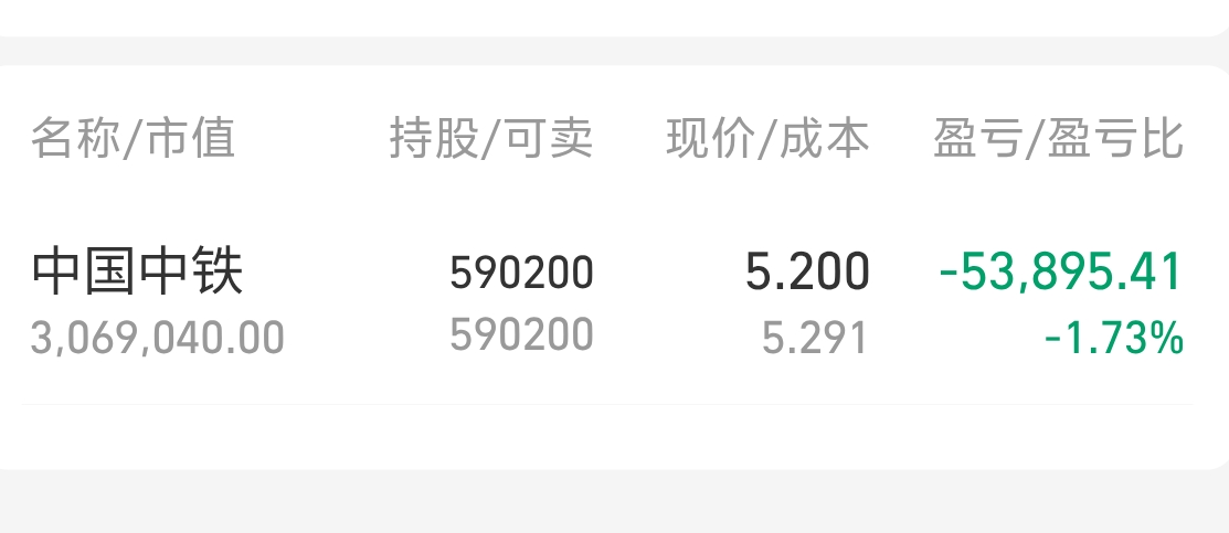 $中国中铁(SH601390)$小托托快点出来安慰下你的忠实粉丝吧