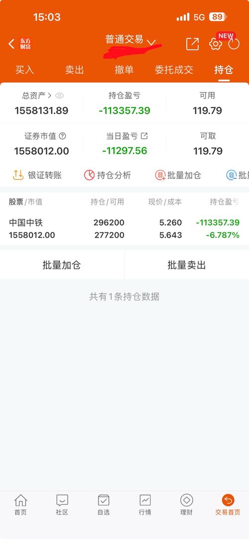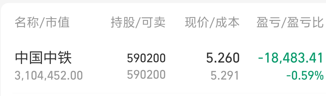 $中国中铁(SH601390)$2个账号都买了你.其他股也套了10几个点,资金已经打完了,都是一些老登股.只能等分红了.这是其中一个账号持有中铁