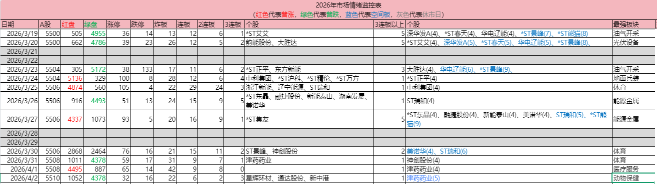 2026-04-02日市场情绪监控情况