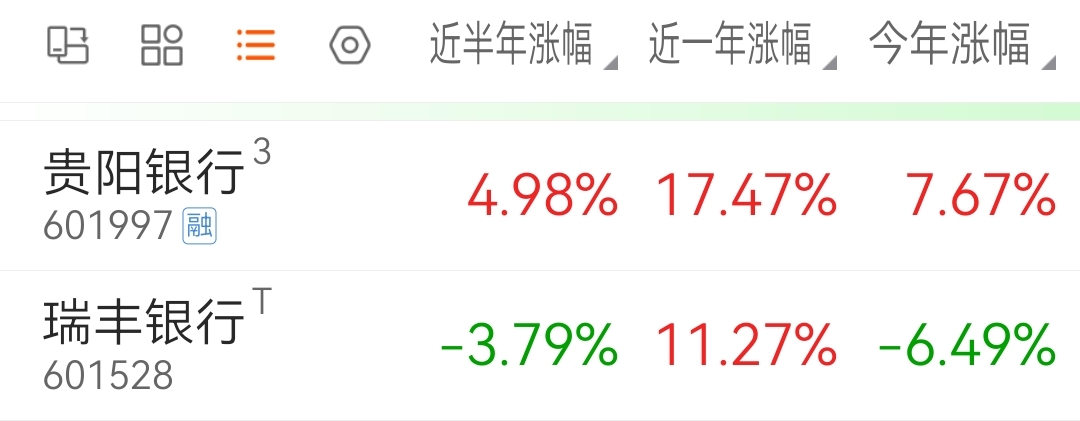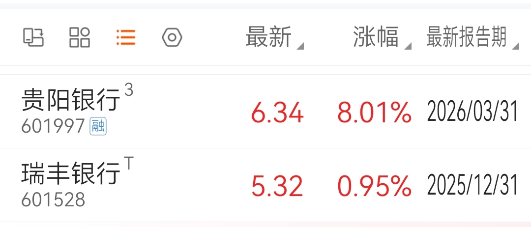 $瑞丰银行(SH601528)$低位一定要加仓,$贵阳银行(SH601997)$基本出了icu,将会有不错的涨幅,城商行最后的机会