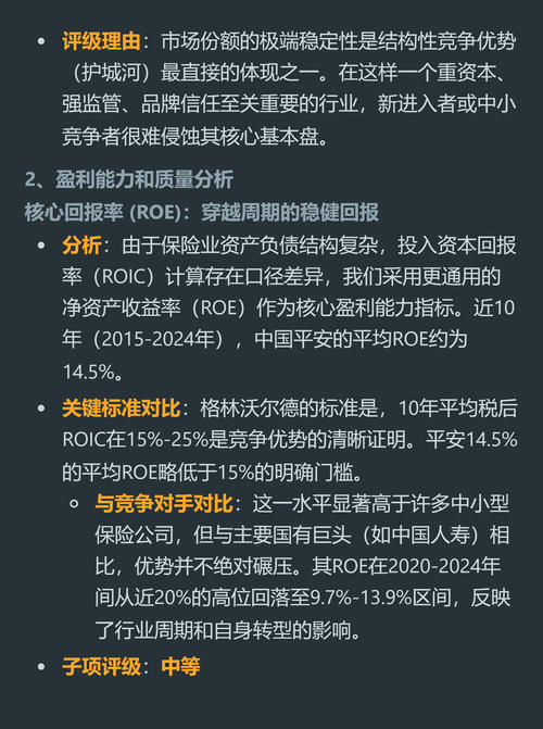 $中国平安(HK|02318)$$中国人寿(SH601628)$$中国太保(SH601601)$别再吵平安是不是被低估了,先搞懂它的真实护城河到底有多厚。 中国寿险市场是平安的基本盘,近5年它的保费市场份额一直稳在15%到17%之间,年波动不到2个百分点,稳居行业第二。按竞争战略权威格林沃尔德的标准,这个波动幅度已经证明行业进入壁垒极强,新玩家根本啃不动它的基本盘。 过去10年它的平均ROE是14...