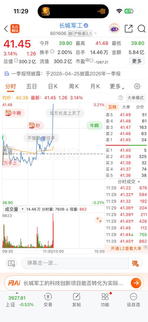 $长城军工(SH601606)$现在的走势确实是要涨停了