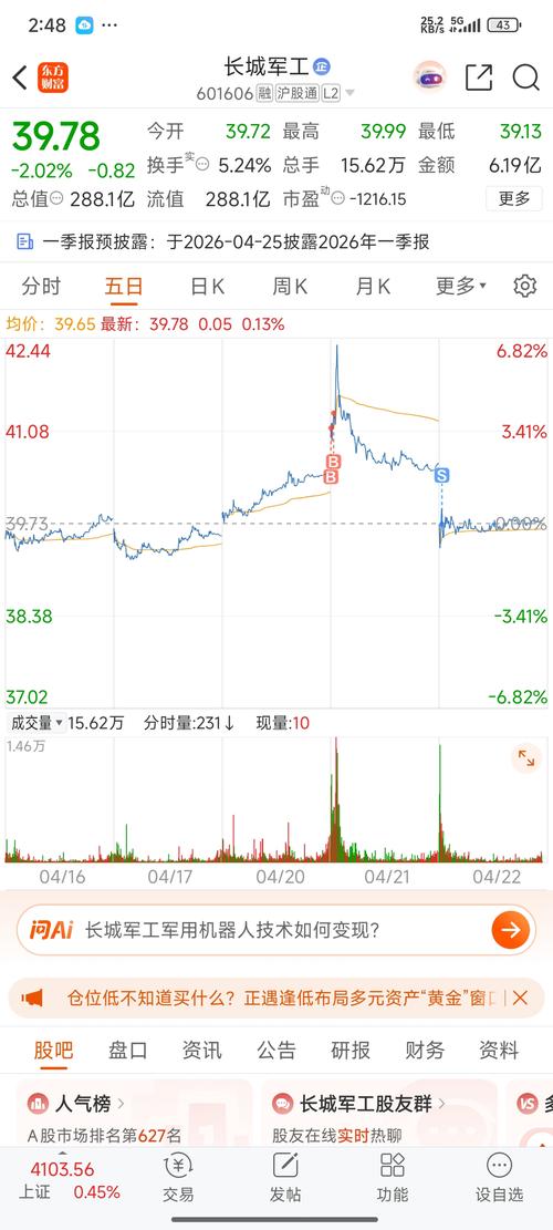 $长城军工(SH601606)$40.45买的今天39.8卖了
