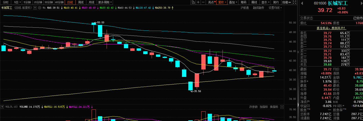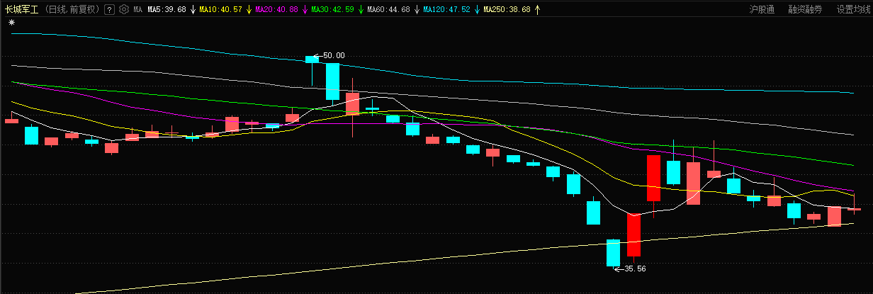 长城军工:月线破10月线为弱势,长线看空。日线均线空头排列,形成下跌趋势,极弱。后续以日线反弹后再下为主要脉动$长城军工(SH601606)$