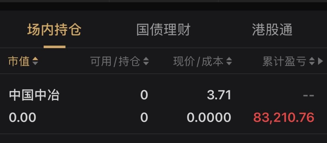 我对搞建筑,搞工程的没兴趣,紫金矿业已经涨了10倍,其他有色股票也涨了3至5倍,而隐形有色龙头中国中冶股价却是净资产打7折,下一轮有色行情,中国中冶是龙头。两成仓位,期待挖坑!