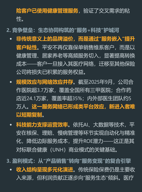 $中国平安(HK|02318)$$中国人寿(SH601628)$$中国太保(SH601601)$别再把中国平安当成单纯的保险公司了,它现在的玩法早就对标美国联合健康,走的是综合金融加医疗养老的双轮路线。 传统寿险财险还是基本盘,但战略重心已经转到医养服务上。现在它合作的医院超过3.7万家,覆盖全国所有三甲,合作药店接近24.1万家,还有5万人的内外部医生团队,这套服务网络新玩家根本没法短期复制。已...